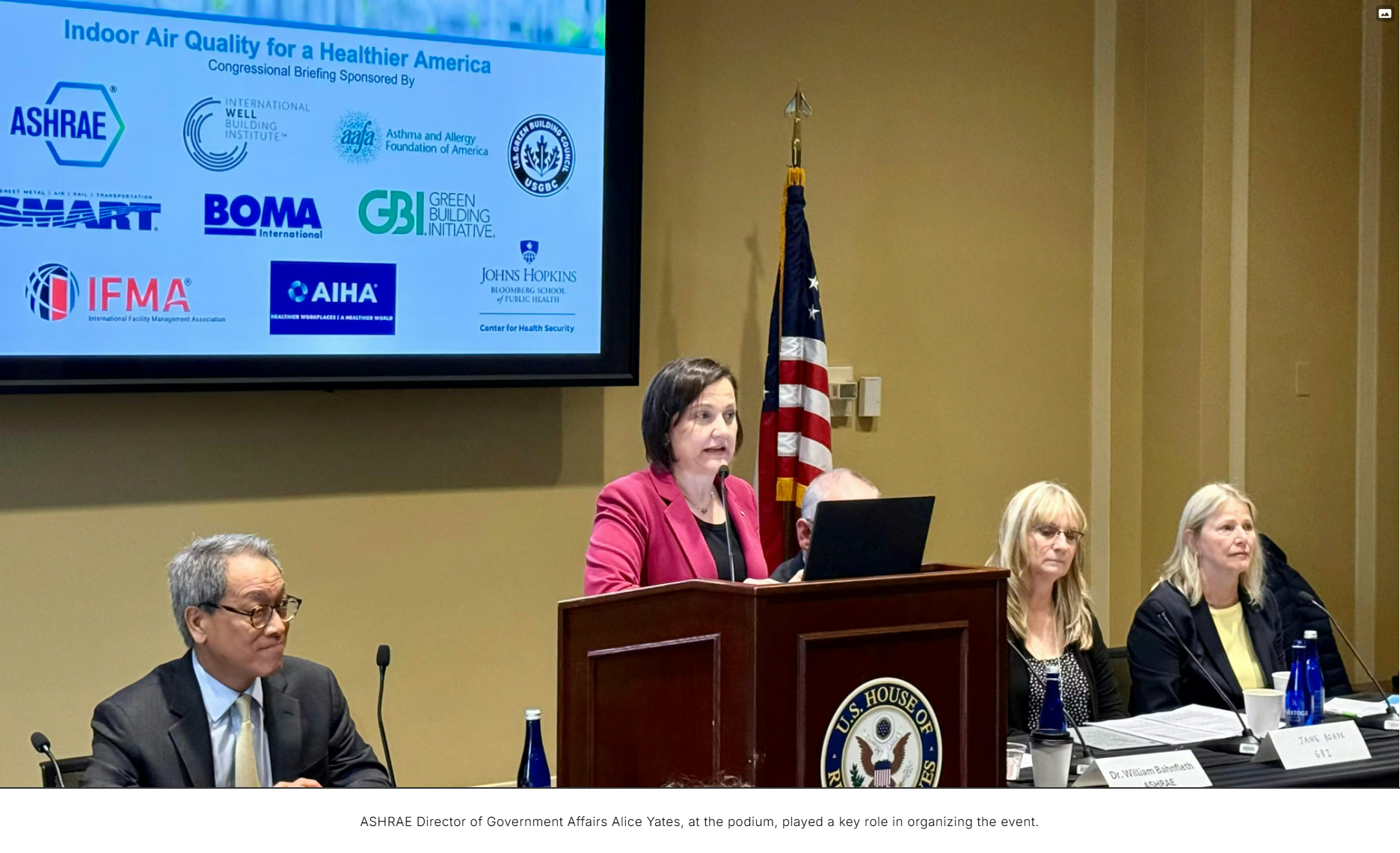 The briefing also underscored the importance of collaboration. Thanks to ASHRAE (with key leadership from its Director of Government Affairs, Alice Yates), the briefing brought together these leading nine organizations for an impactful discussion on Capitol Hill that elevated IAQ as a central issue linking public health, building performance and national resilience.